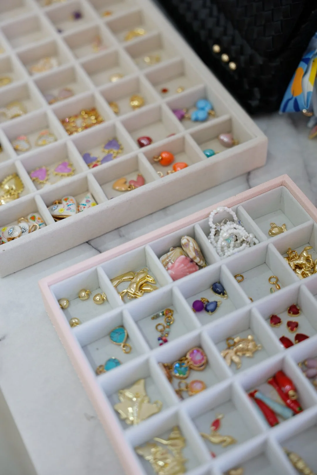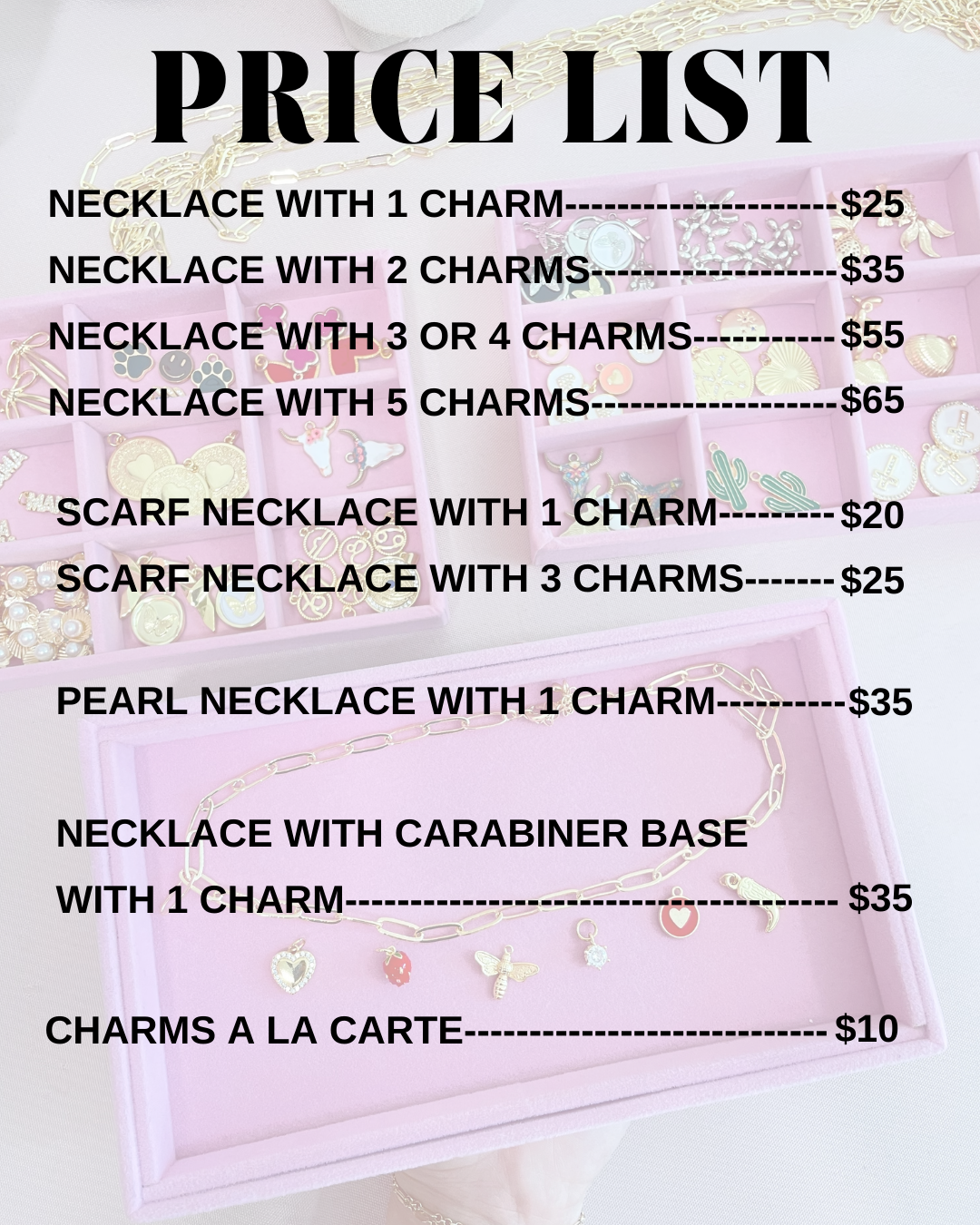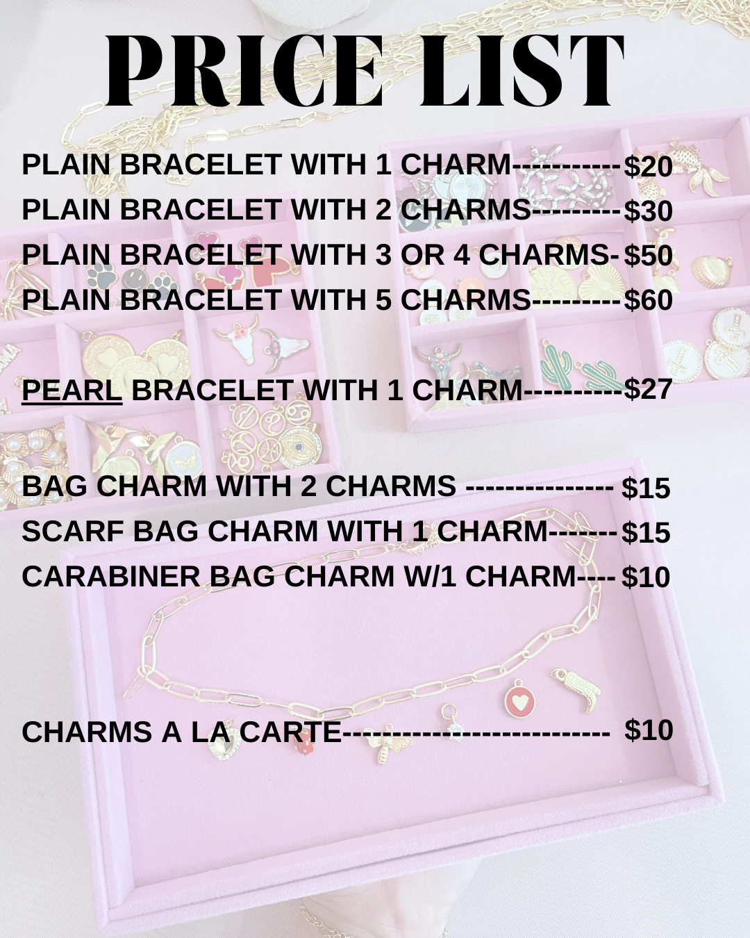 We offer necklaces, bracelets and bag chains! The Charm Bar is exclusively in our Carytown Storefront location.
